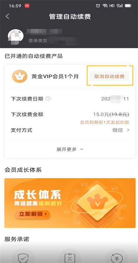 4、点击取消自动续费即可。