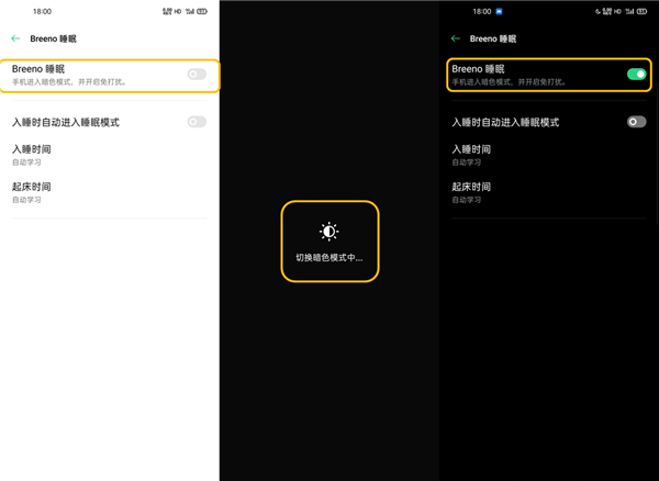 注:开启Breeno睡眠后,不影响免打扰、暗色模式功能的单独关闭。