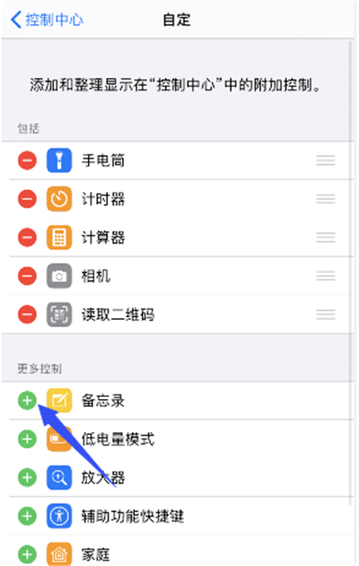 备忘录添加到控制中心教程: