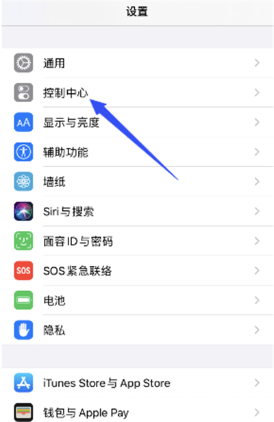 1、打开手机设置,点击控制中心。