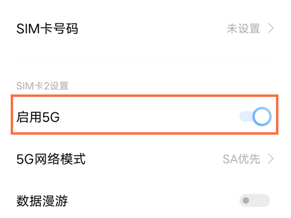 2、点击SIM卡信息与设置,选择一张SIM卡,将【启用5G】右侧的开关关闭即可。
