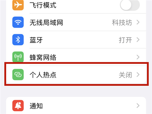 1、打开手机设置,点击【个人热点】。