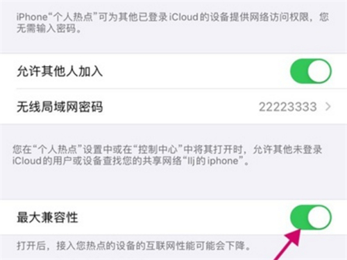 2、开启热点后,将【最大兼容性】的开关打开即可设置2.4g频段的热点。