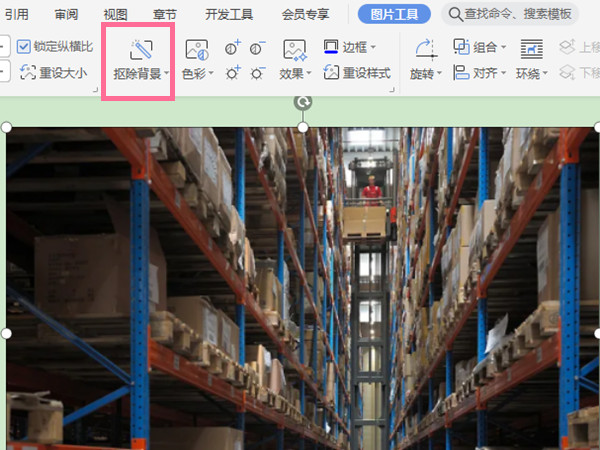1、打开wps文字,选中图片,点击上方工具栏中的【抠除背景】。