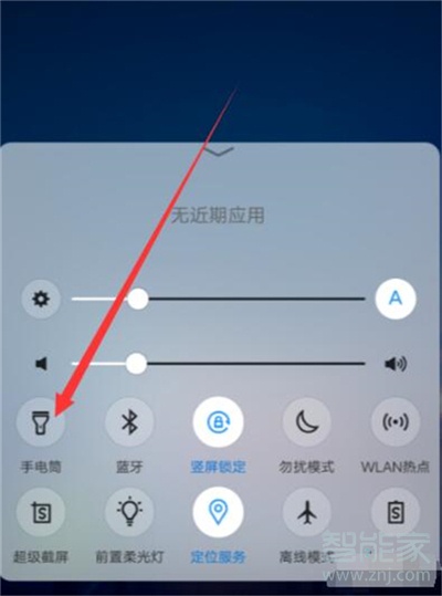 方法一:从屏幕底部向上滑,之后在拉出来的快捷功能里面可以找到手电筒,点击即可打开手电筒。