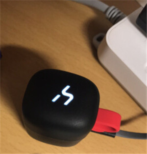 4.成功充电时,充电盒顶部的logo指示灯会亮起并闪烁,当指示灯常亮时说明电量充满,一般 2 个小时左右即可将电量充满,之后可以将电源移除。