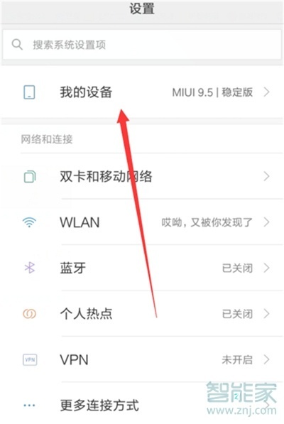 在设置界面,点击第一栏【我的设备】进入查看手机信息。