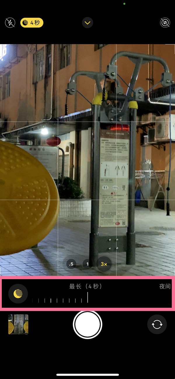 夜景模式按钮旁的数字表示曝光时间秒数,当环境和稳定度都较差时,时间秒数越长。