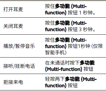 1.耳机关机时按下多功能按钮1秒可以打开耳机,再按住多功能按钮3秒可以关闭耳机。