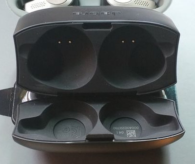2.再看看捷波朗臻律耳机充电盒,打开充电盒之后便可看见充电盒内有两个和耳机相对应的凹槽,凹槽内底部就是和耳机上金属圆片连接的触点。
