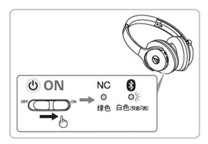 2.将ATH ANC700BT耳机电源按钮拨向 on 档位,将耳机开机,指示灯将亮起白灯,然后闪烁,进入配对状态。