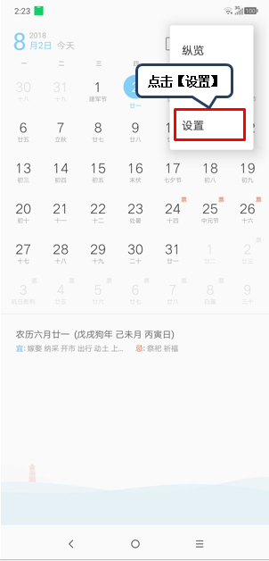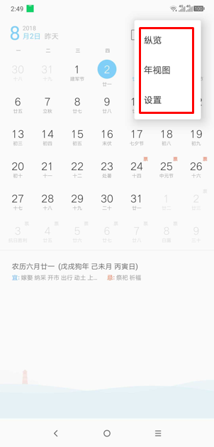 3、点击【选单】图标,可查看【纵览】、【年视图】及进入【设置】界面。