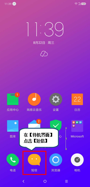 1.在【待机界面】点击【短信】。