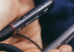 万魔E1004BA降噪耳机将电源按钮设置在了左边颈带上方,电源按钮附近有一个电源图标,很容易辨识。