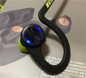 2.长按缤特力BACKBEAT FIT耳机的电源开关,直到耳机LED指示灯闪烁红、蓝灯光,耳机就会自动进入配对状态。
