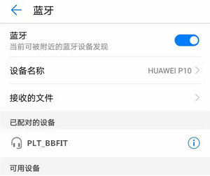 3.此时手机的蓝牙设备搜索列表上会出现缤特力BACKBEAT FIT耳机的名字,如果没有,请尝试刷新蓝牙功能界面。在设备名称选项中选择“PLT_BBFIT”,并按照手机上显示的说明步骤配对连接。