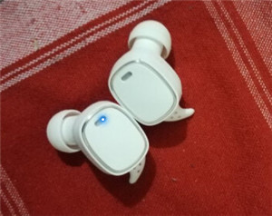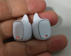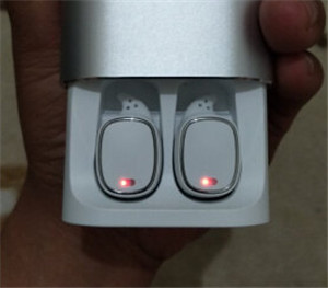 2.将两只耳机取出充电盒,并且长按两边耳机上的触控区域 3 秒左右将耳机开机,耳机指示灯都会红蓝闪烁。