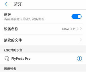 3.此时手机的蓝牙设备搜索列表上会出现荣耀flypods pro耳机的名字,如果没有,请尝试刷新蓝牙功能界面。在设备名称选项中选择“FlyPods Pro”,并按照手机上显示的说明步骤配对连接。