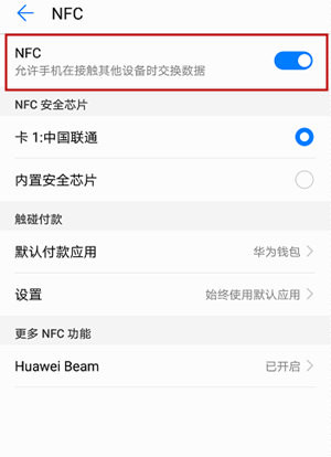 1.将手机上的NFC功能设置为开启,且屏幕处于激活状态并已解锁。