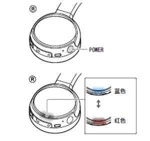 2.按住power按钮约 7 秒钟使耳机进入配对模式。松开按钮后,确认指示灯闪烁红蓝双色灯光,会听见语音指导“蓝牙配对”。