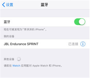 此时手机的蓝牙设备搜索列表上会出现耳机的名字,如果没有,请尝试刷新蓝牙功能界面。选择“JBL Endurance SPRINT”按照手机上显示的说明步骤配对连接。