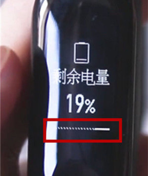可以向左滑动到下方进度条的最后一个功能选项,就是手环的剩余电量。当然,也可以从“步数”界面向右滑动一下就可以了。