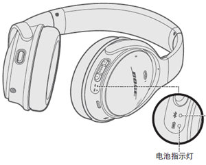 电池指示灯位于右侧耳罩。