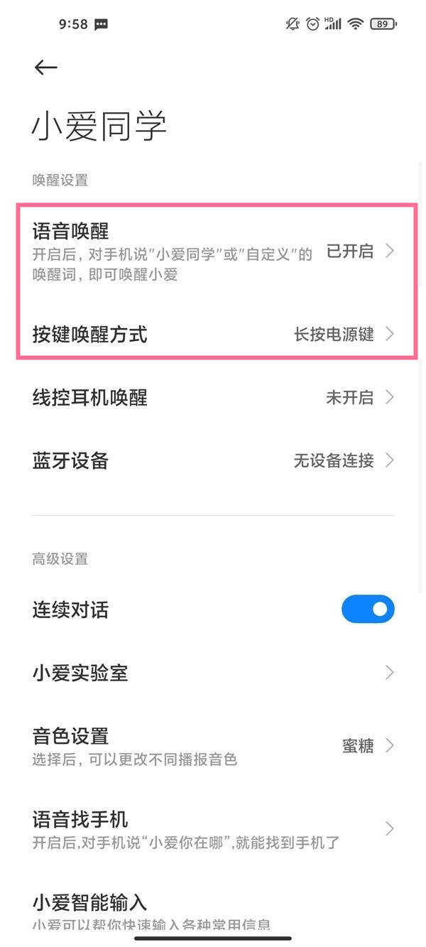 2、可选择【语音唤醒】或长按电源键唤醒小爱同学。