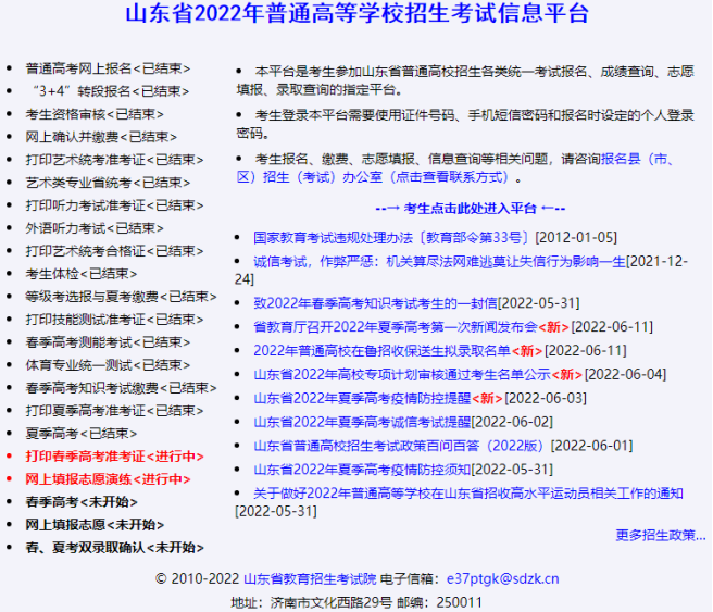 考生在浏览器中访问http://wsbm.sdzk.cn ,进入山东普通高等学校招生考试信息平台系统主页,如下图: