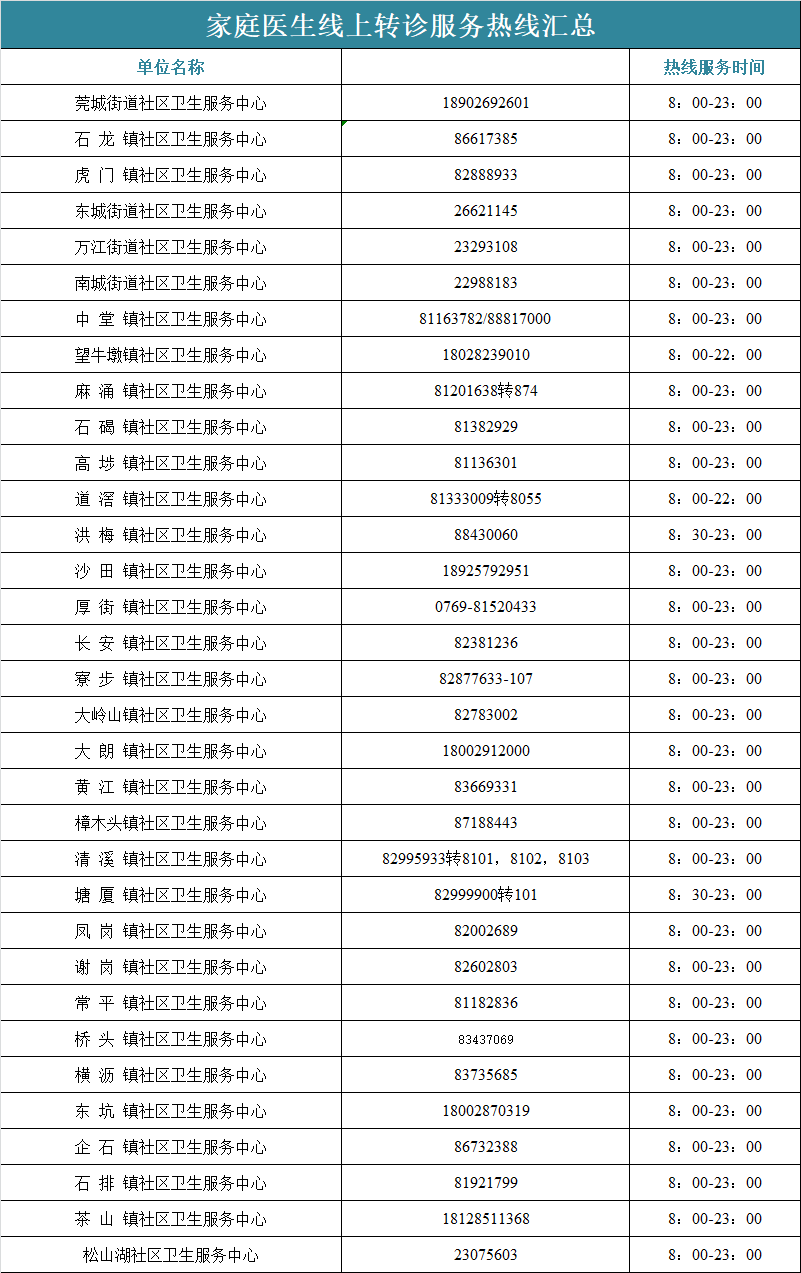 如果遇到转诊有关问题,可以致电询问有关镇区: