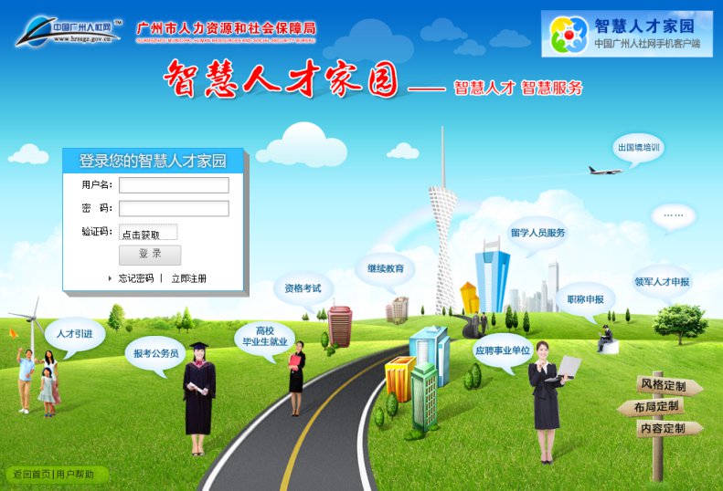 1、在广州市人力资源和社会保障局(http://gzrsj.hrssgz.gov.cn/vsgzhr/login_home.aspx)智慧人才家园门户网站点击【立即注册】,进入用户注册。