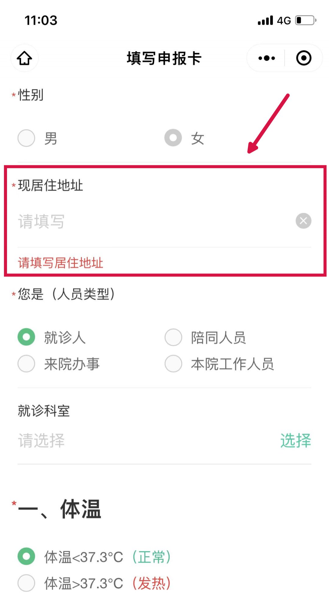 注:“健康申报卡”有效期24小时。建议您在来院前提前填写,现场扫描我院专属二维码即可快速打开,无需重新填写信息,以便快速通行。超过24小时需要重新申报。请如实填写健康申报卡的相关信息。