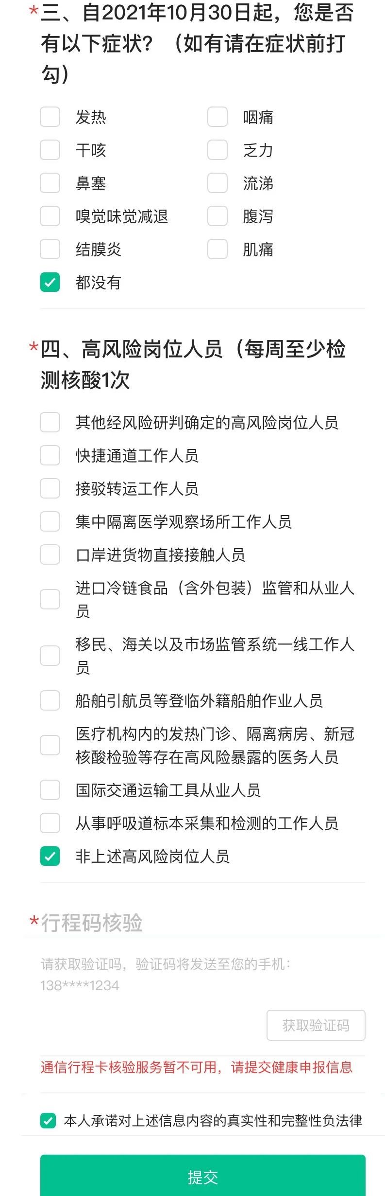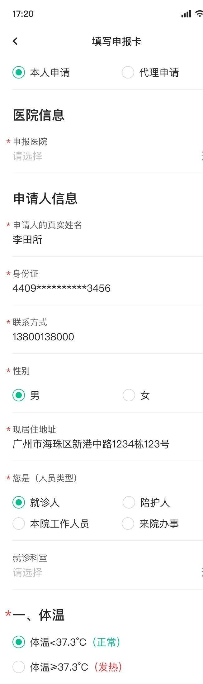 3、本人填报预检分诊健康申报卡。用户填报完成健康申报卡调查内容后,进入医疗机构向工作人员出示健康申报卡信息(有效期24小时,自申报时间起算)。