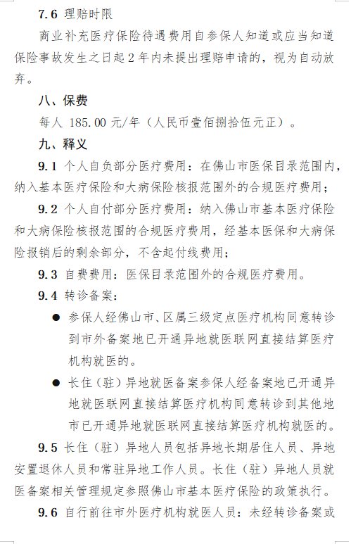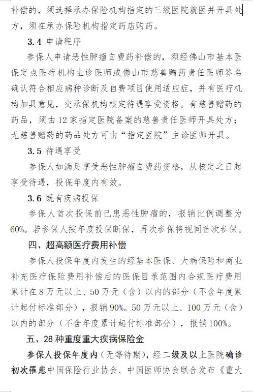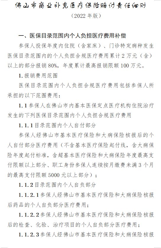 参保人参保后可享受的待遇详见《佛山市商业补充医疗保险赔付责任细则(2022年版)》