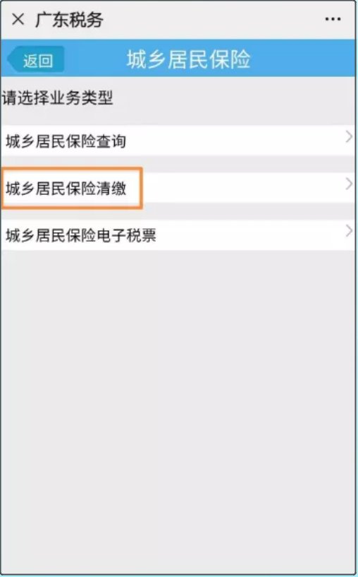 第四步 进入城乡居民保险界面,点击“城乡居民保险清缴”,选择对应险种,点击“本人缴费”按钮可以给自己缴费。