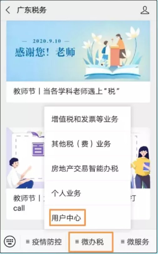 第二步 点击“微办税”,选择“用户中心”进行身份绑定。