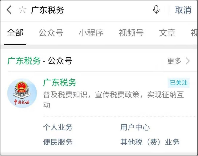第一步 打开微信,搜索“广东税务”微信公众号,点击进入。