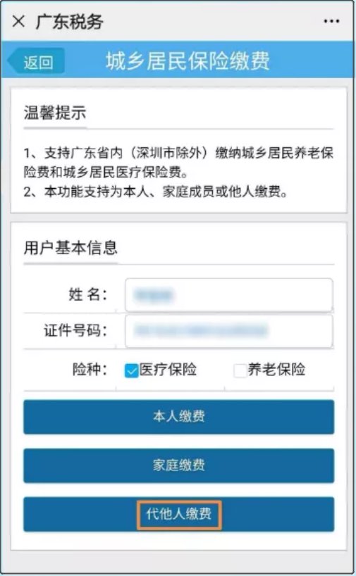 点击“代他人缴费”,完善他人身份信息,选择险种,可以帮其他人,如自己的父母缴费。