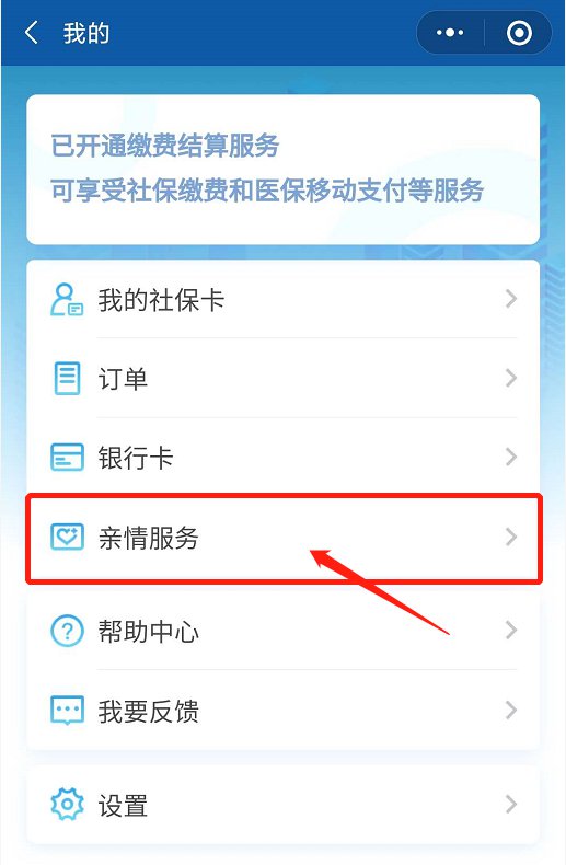第三步:点击右上角“我的”,找到“亲情服务”,按提示进行添加信息及开通。