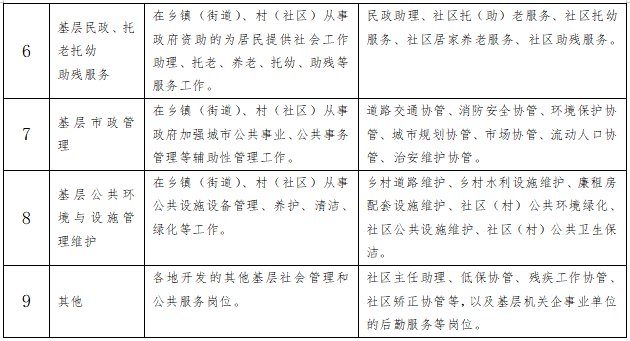 应届高校毕业生和毕业两年内高校毕业生到中小微企业、个体工商户、社会组织等就业,或到乡镇(街道)、村居社会管理和公共服务岗位就业(含参加政府部门组织的服务基层项目,机关事业单位编内人员除外),签订1年以上期限劳动合同并参加社会保险6个月以上的,可申请到基层就业补贴。