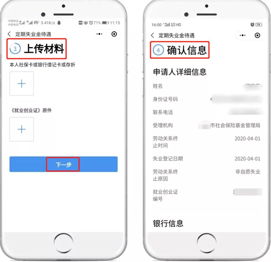 第四步 校验通过,进入填写信息页面,系统通过数据比对自动获取联系电话、劳动关系终止原因、银行账户等信息。