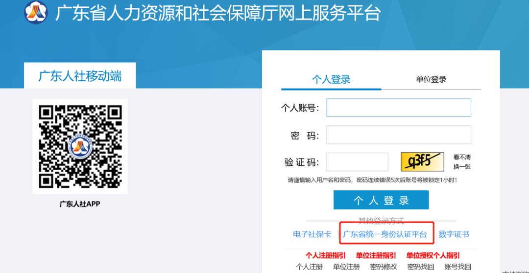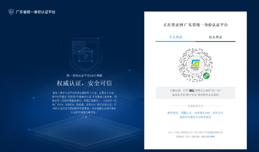 ②使用个人账号登录后进入系统(如已注册“粤省事”个人账号的,可以点击“广东省统一身份认证平台”,选择“粤省事认证”,打开微信扫码认证后进入系统)
