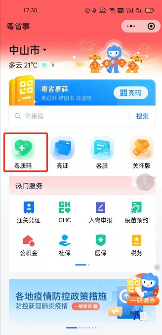 第二步:打开“粤康码”
