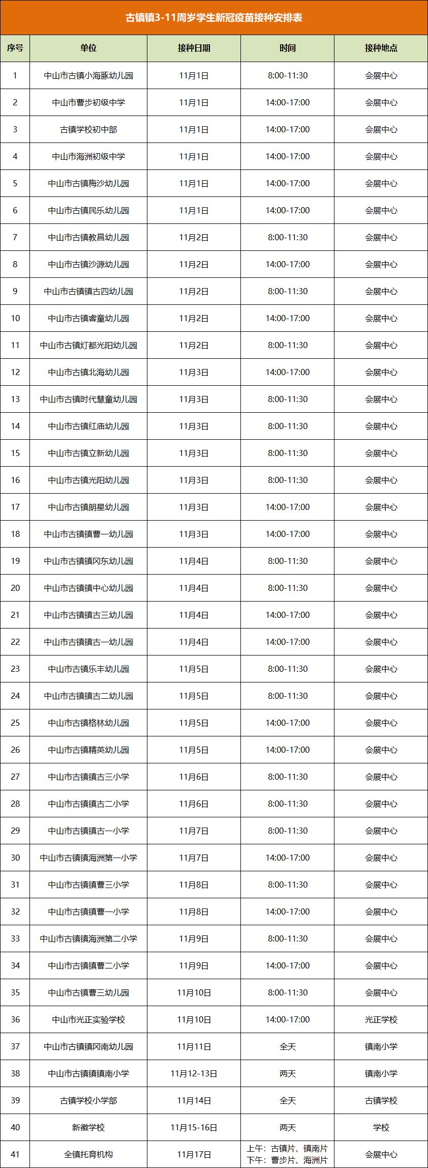 古镇各学校3-11岁儿童新冠疫苗接种安排表
