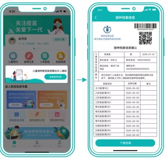 ☆绑定粤苗APP后的儿童接种档案信息截图。