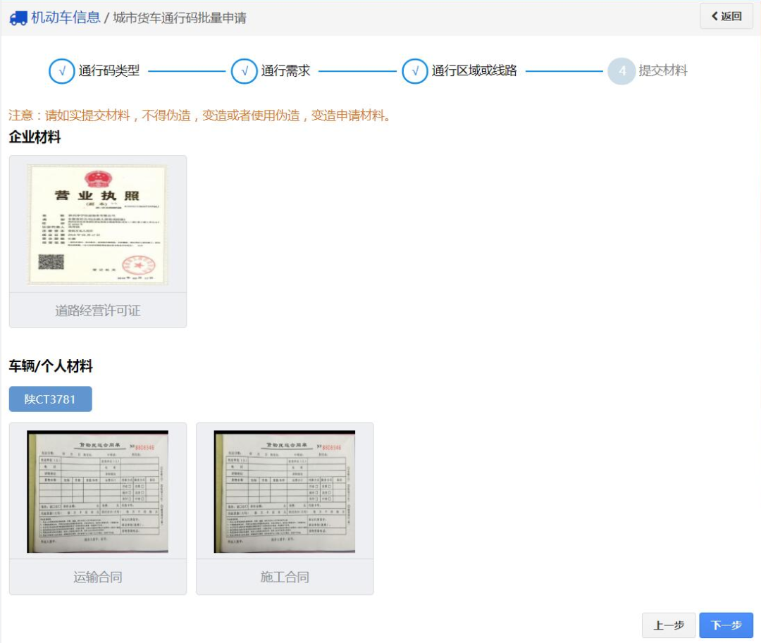 06、然后根据提示上传企业材料以及车辆信息,建议提前把资料准备好。(可以一次多辆车辆进行上传)。