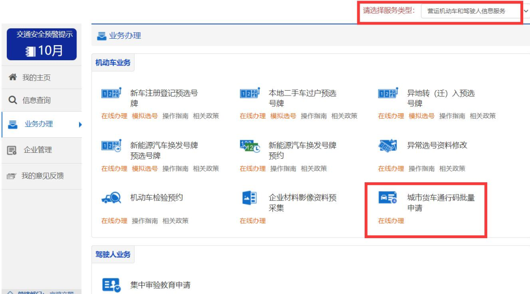 已备案的企业用户,可以在交通安全综合服务管理平台,为企业名下已备案的机动车批量申请城市货车通行码。