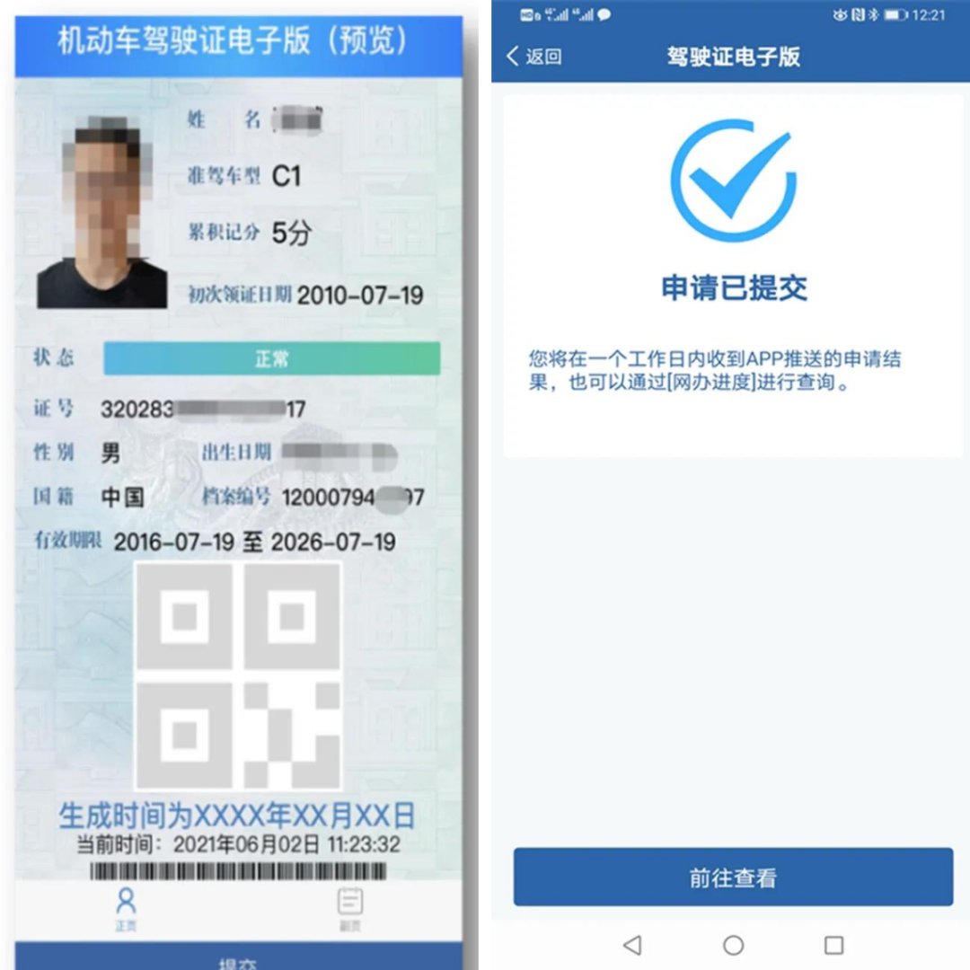 提交照片后,公安机关交通管理部门将在1个工作日内进行审核,对符合要求的,“交管12123”APP将生成电子驾驶证,并推送申请成功信息。
