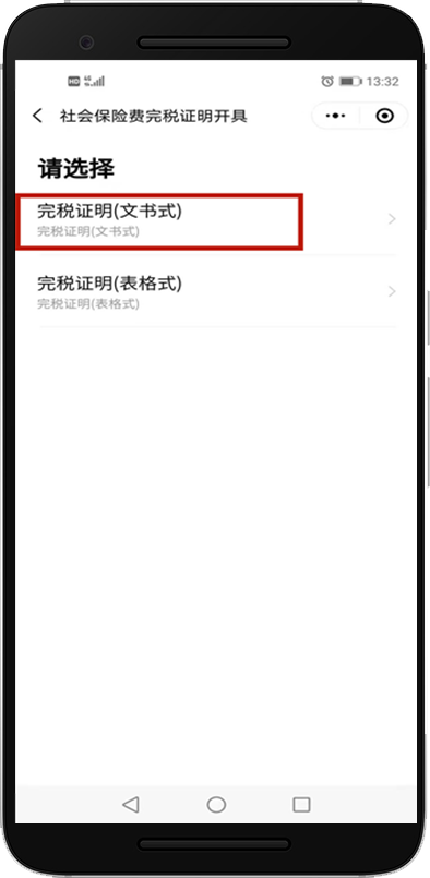 (2)如属于在企业参保的,需点击“完税证明(文书式)”。如以灵活就业人员方式参保的,点击“完税证明(表格式)”。