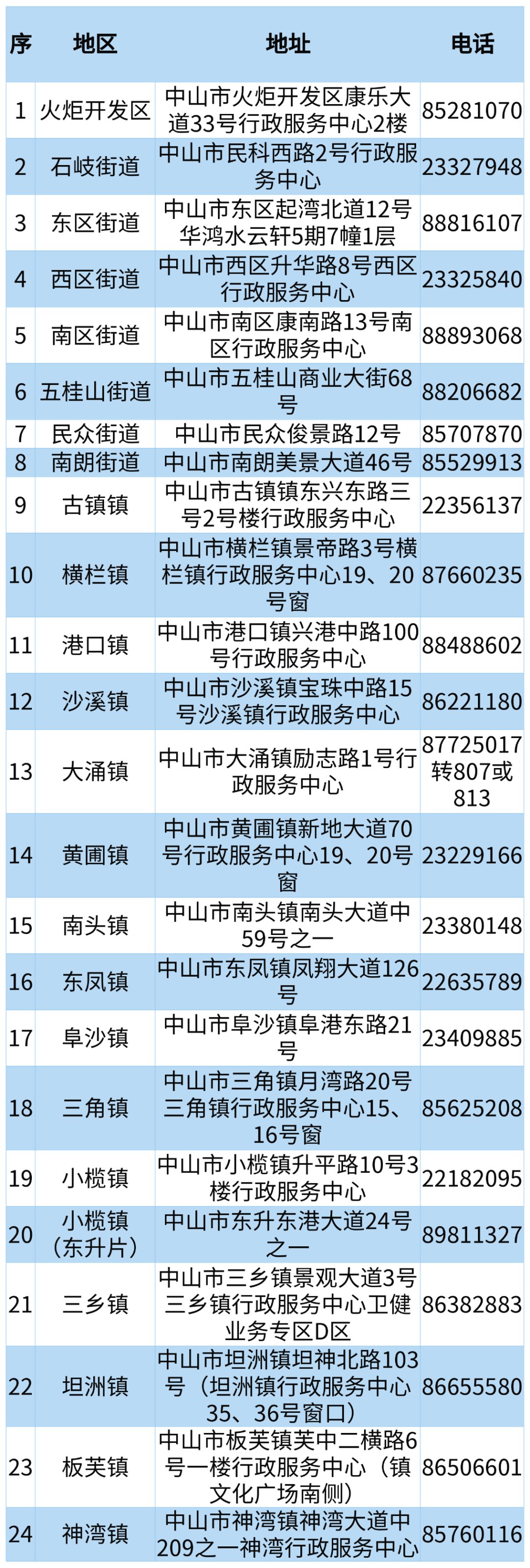 各镇街经办地址